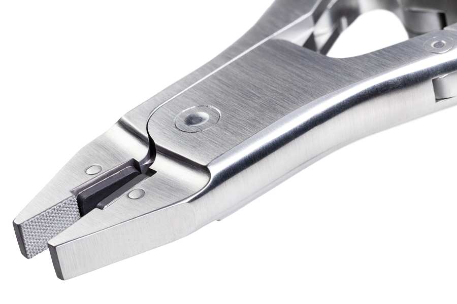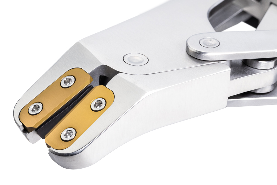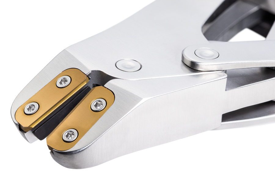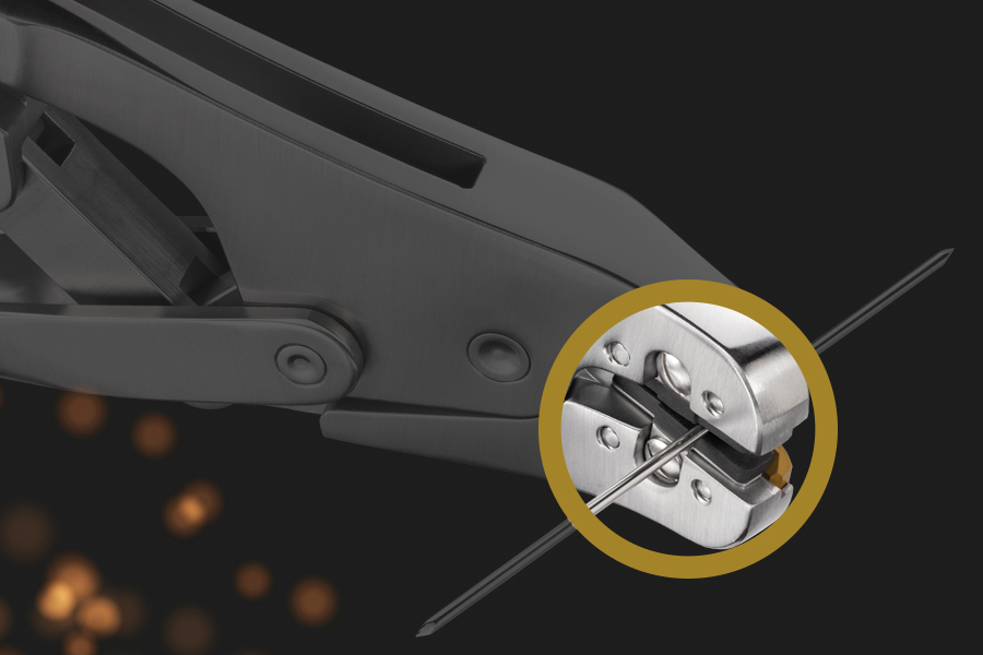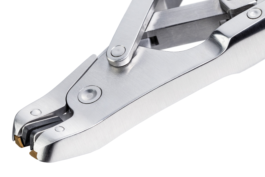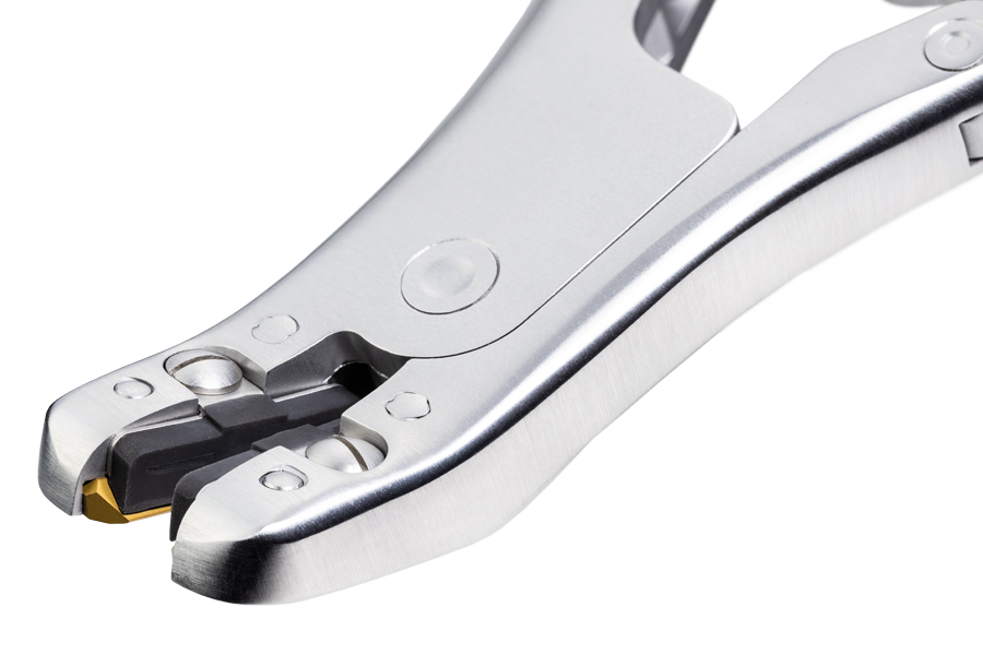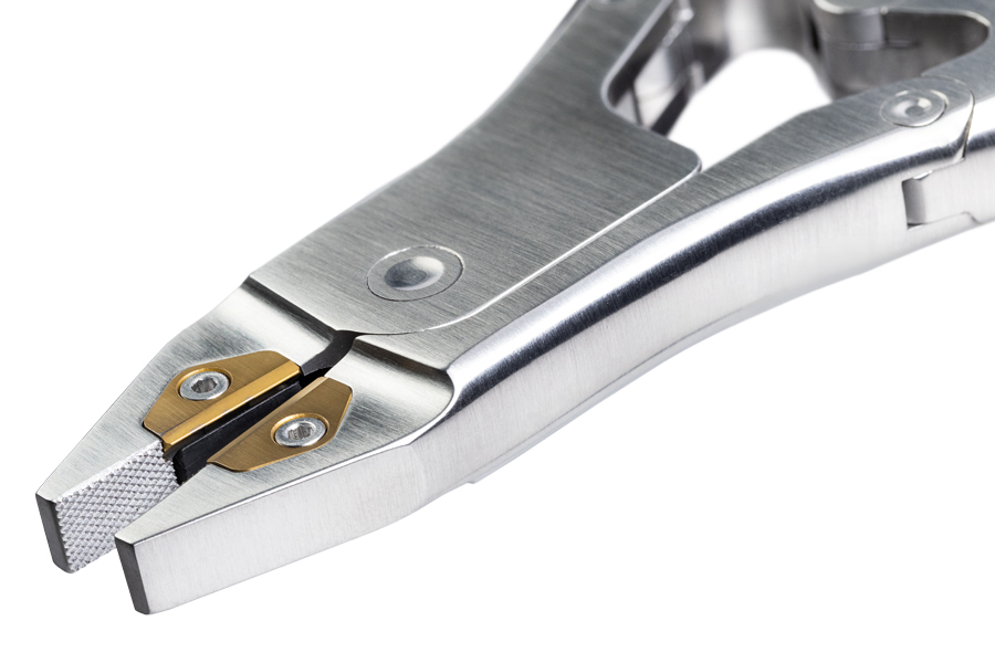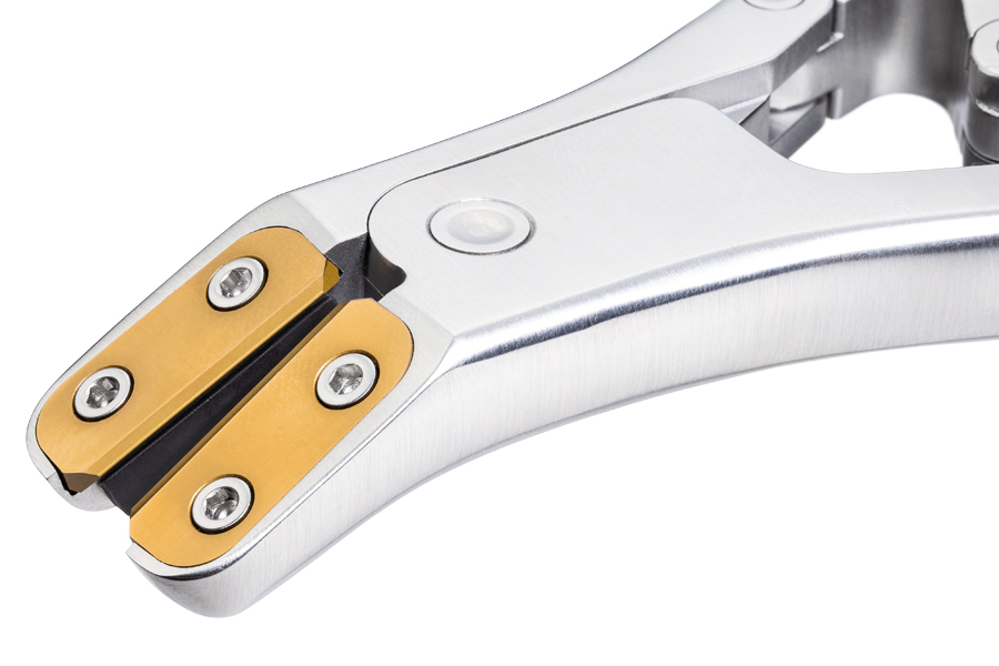 Auswechselbare Gummibacken sorgen für ein sicheres Halten des Drahtes nach dem Abtrennen.